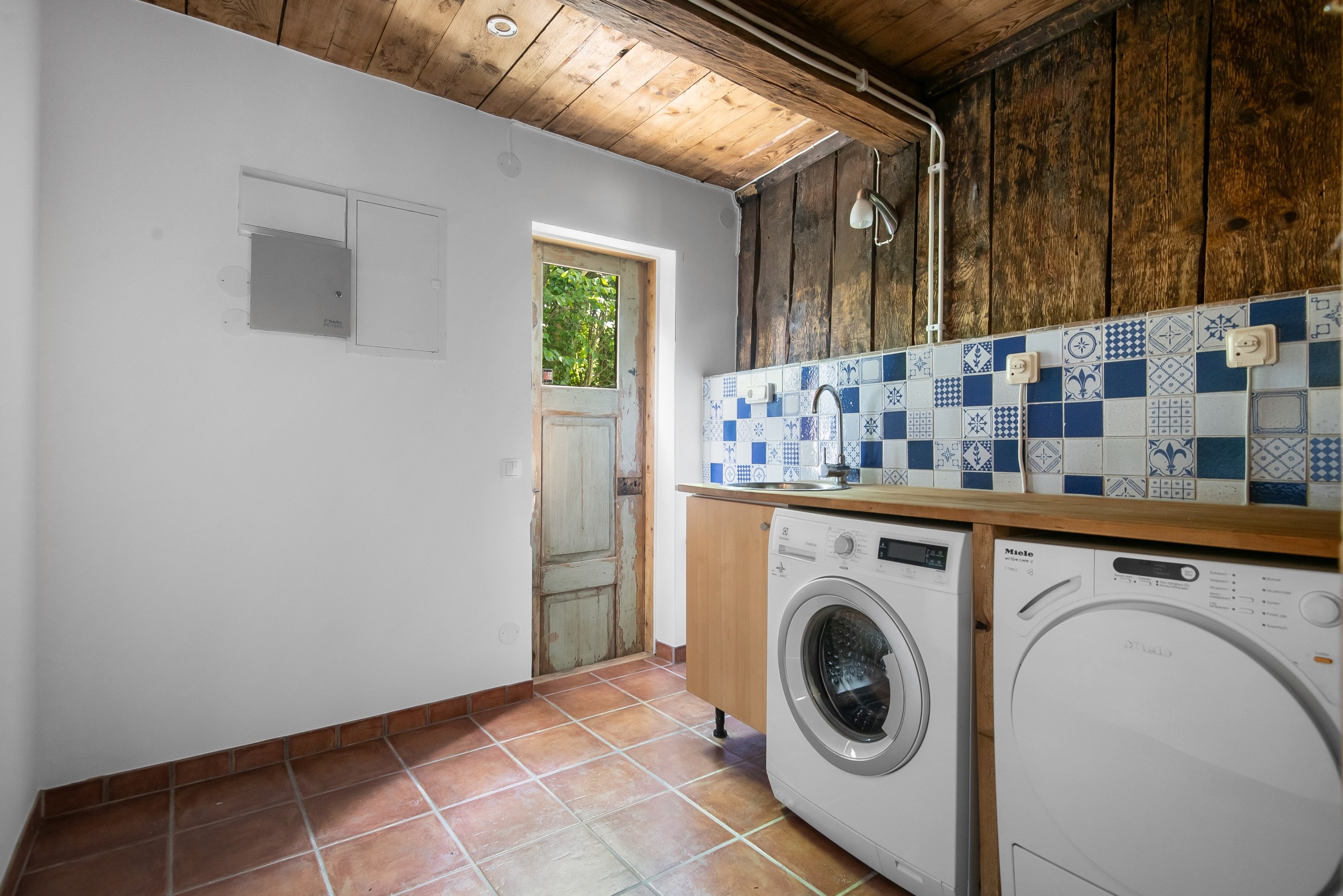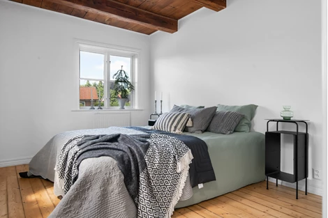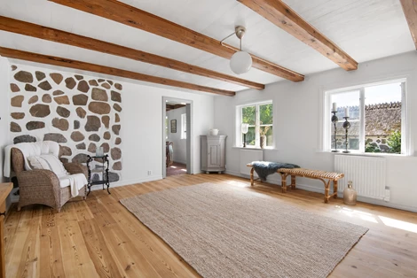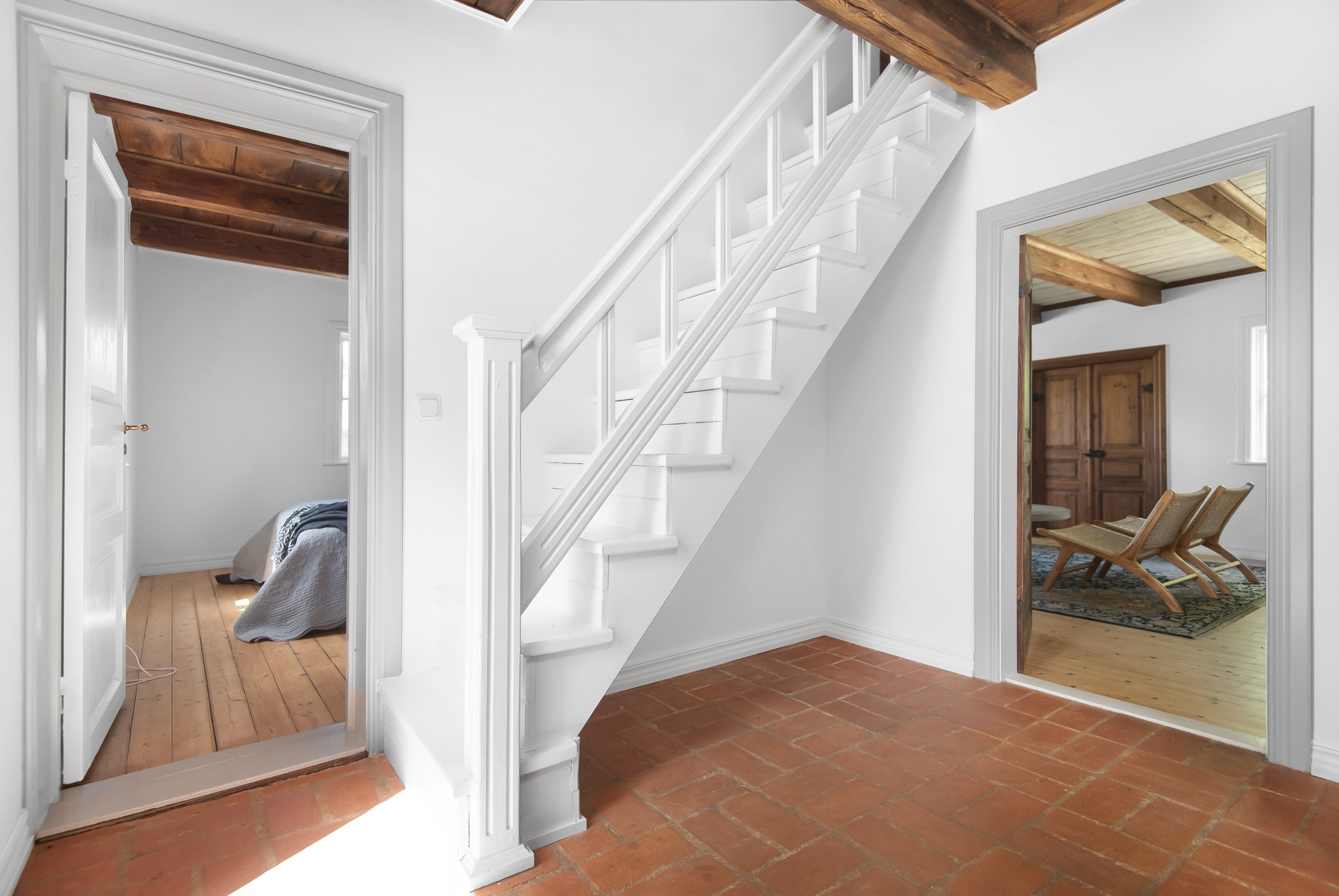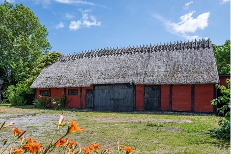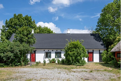 Bostadslängan har varsamt renoverats med respekt för gårdens själ. Här har hantverkare med finess och fingertoppskänsla skapat ett hem som både uppfyller dagens krav på komfort och samtidigt bevarar den genuina atmosfären. Originaldetaljer blandas harmoniskt med moderna inslag och skapar ett varmt, inbjudande boende där varje rum bär på sin egen berättelse. Bottenvåningen inrymmer två sovrum , stort matrum, vardagsrum samt kök, grovkök och badrum. Övre plan har en stor öppen yta som kan avdelas, ett sovrum samt kaklad toalett.