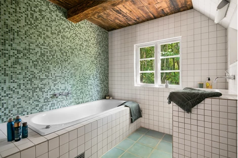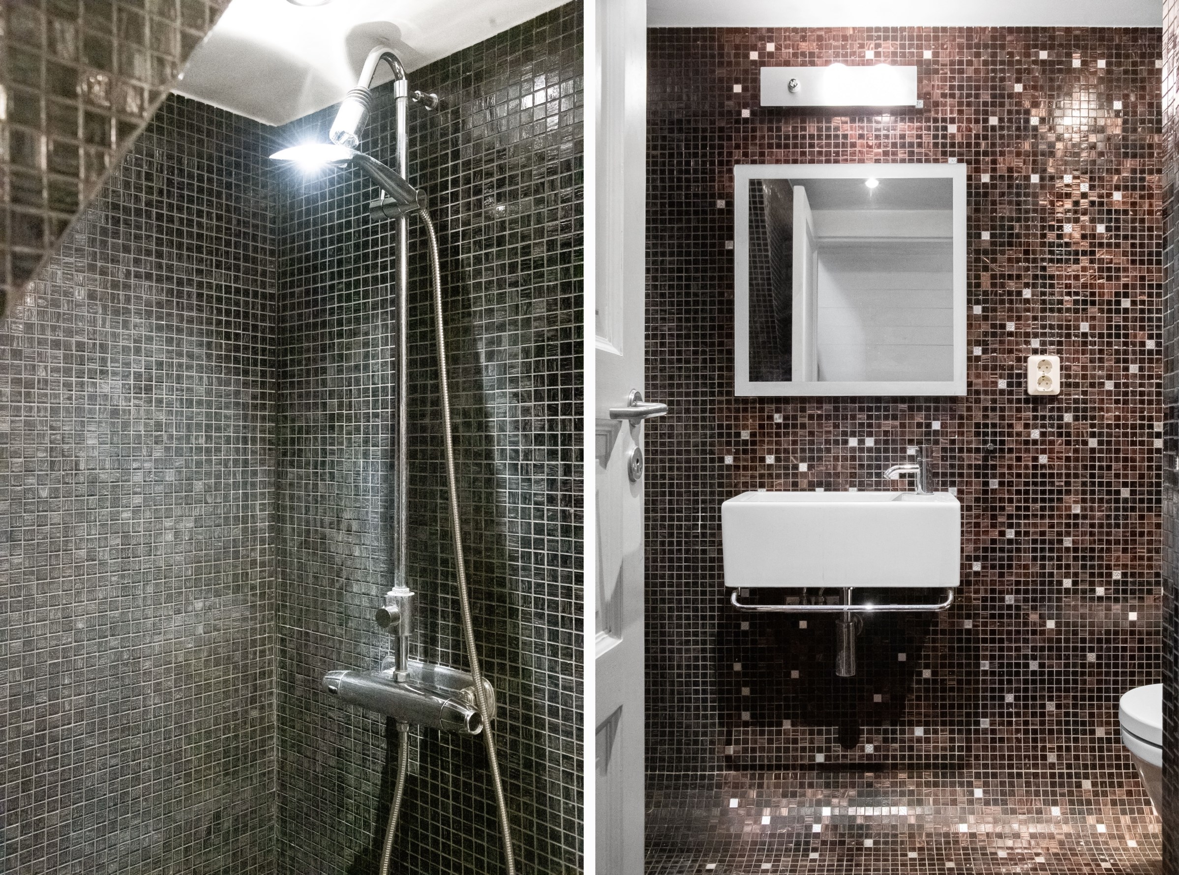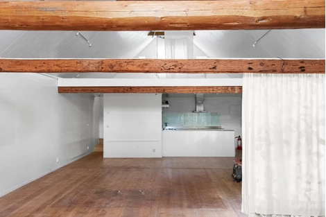 Den ena längan är redan omvandlad till en charmig ateljé – ett perfekt utrymme för dig som söker en plats för kreativitet eller kanske ett gästboende. Här finns ett öppet kök, stilrent badrum med vacker mosaik och ett mysigt sovloft. En inspirerande miljö med många användningsområden. Längan byggdes om 2005 då man isolerade väggar och golv samt installerade kök och byggde kaklat badrum med dusch.